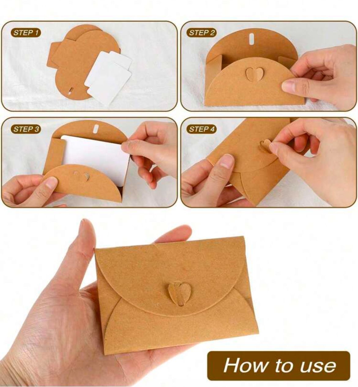 - Kraft Heart Envelope + Insert: mini kraft envelope with a sweet heart closure, includes a matching note insert—warm and charming.